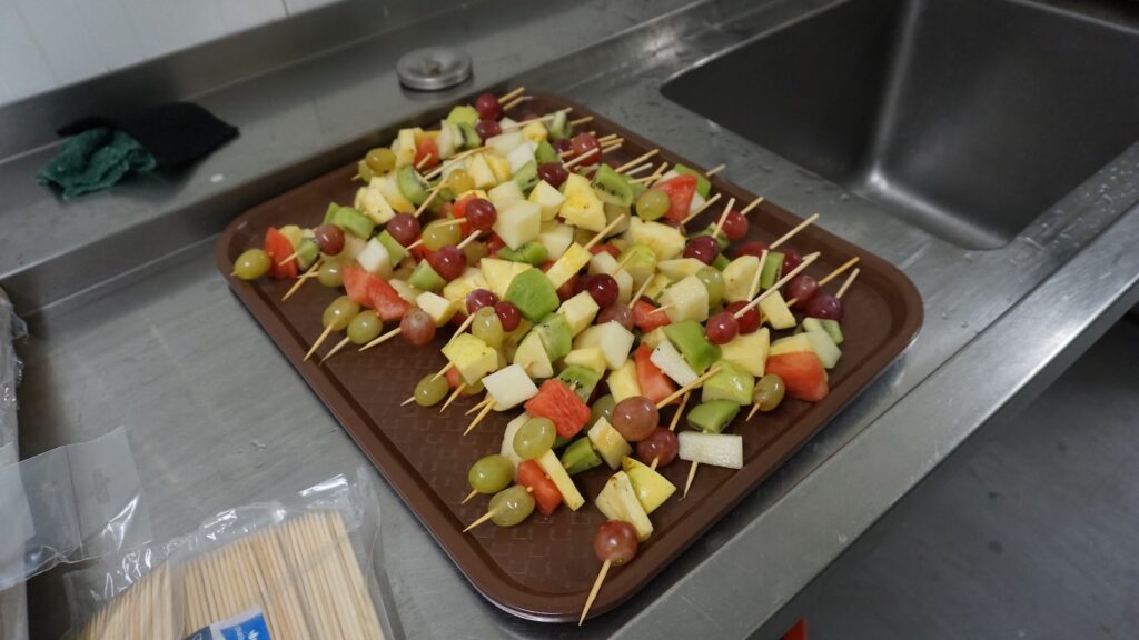 No lanche da manhã, não faltaram as espetadas de fruta, cheias de cor e sabor, que deixaram todos com um sorriso! 🍓🍍🍌