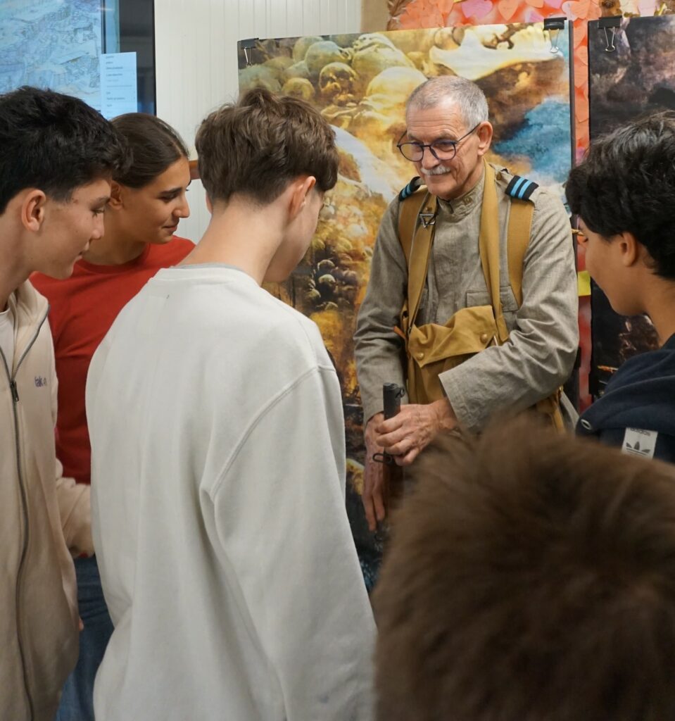 Por outro lado, esta representação foi também uma forma de homenagear todos os que participaram no primeiro conflito mundial. Os alunos revelaram muito interesse e envolvimento na palestra, e no final fizeram questão de tirar fotografias com o orador, devidamente fardado.