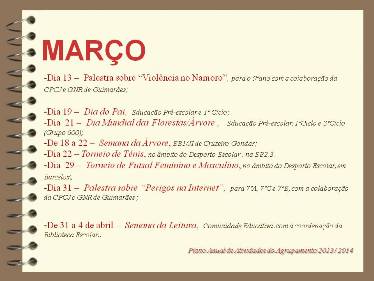 Atividades do mês de março, inserido no Plano Anual de Atividades