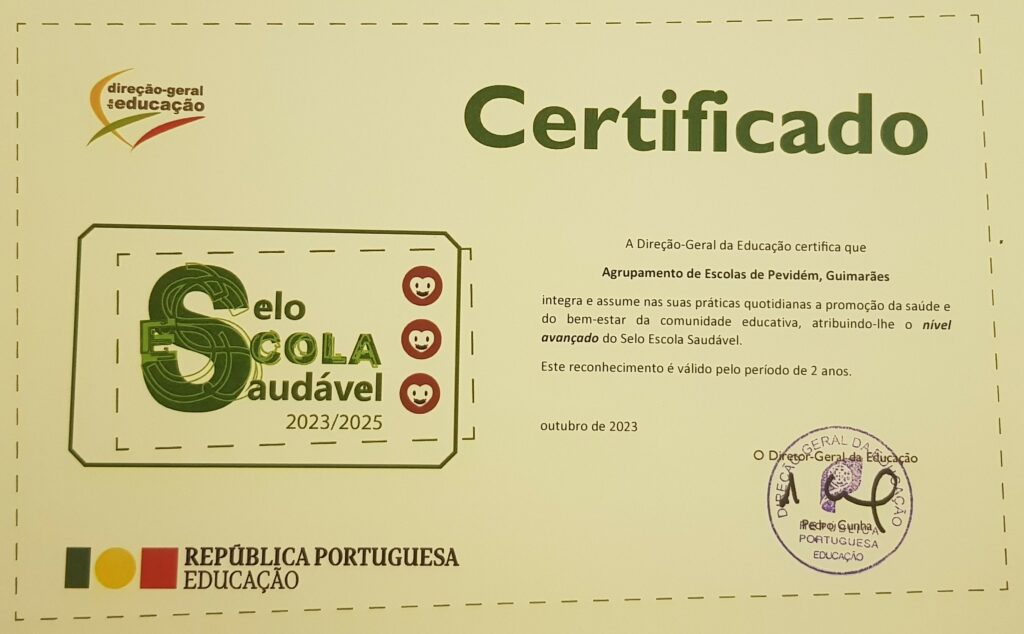No dia 11 de outubro, na Maia (Auditório TECMAIA), houve uma cerimónia de Entrega do Selo Escola Saudável 2023/25 e o Nosso Agrupamento foi um dos agraciados, tendo-nos sido atribuído o nível avançado do Selo Escola Saudável.