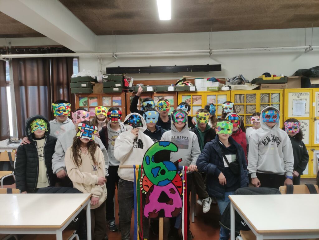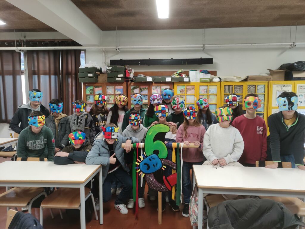 Os alunos das turmas do 5.ºB, 6.ºA, 6.ºB e 6.º C estavam preparados para o Desfile de Carnaval na vila de Pevidém, mas infelizmente a chuva não deixou.