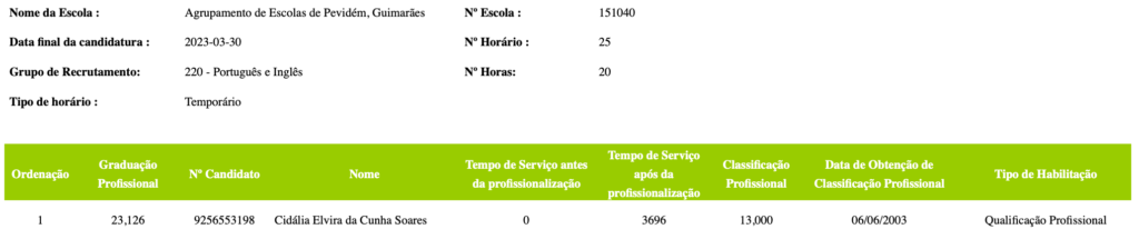 Lista Ordenada Contratação de Escola – Grupo 220