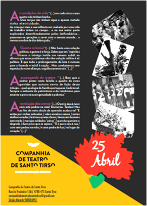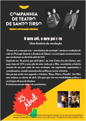 No ano em que se comemoram os 50 anos de Abril, as turmas do 6ºA e do 6ºB tiveram a oportunidade de assistir à peça “O meu avô, o meu pai e eu.