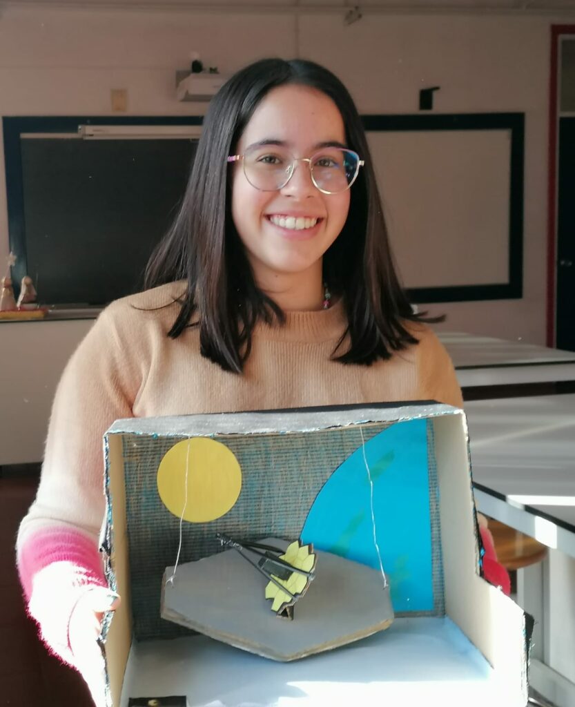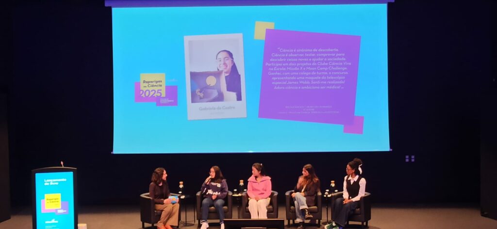 A aluna foi selecionada entre uma centena de alunas por ser uma aluna de quadro de mérito, que gosta de Ciência e que tem participado em diversas atividades nessa área do saber. Por esse motivo, foi convidada pelo Centro de Ciência Viva de Lisboa a partilhar a sua experiência, o seu projeto e o trabalho desenvolvido no Agrupamento, para uma plateia repleta de alunos, professores e familiares. E ela fê-lo com distinção!