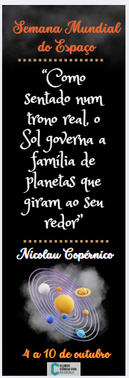 Para assinalar a Semana Mundial do Espaço, três alunos do Clube Ciência Viva visitaram as turmas do 7.º ano, onde recitaram um poema dedicado ao espaço e distribuíram criativos marcadores de livros, preparados especialmente para esta ocasião.