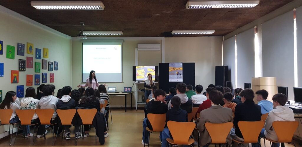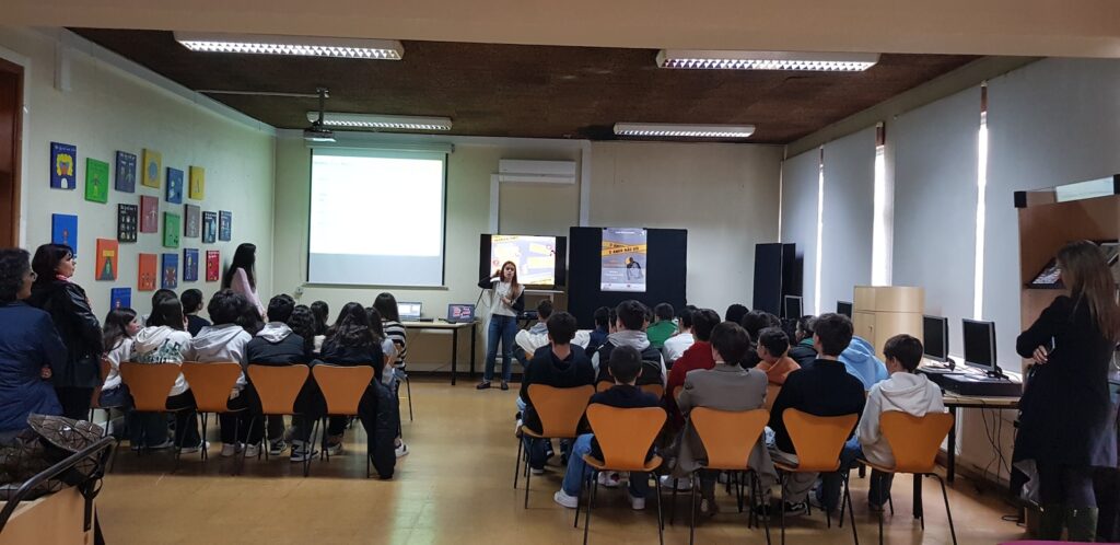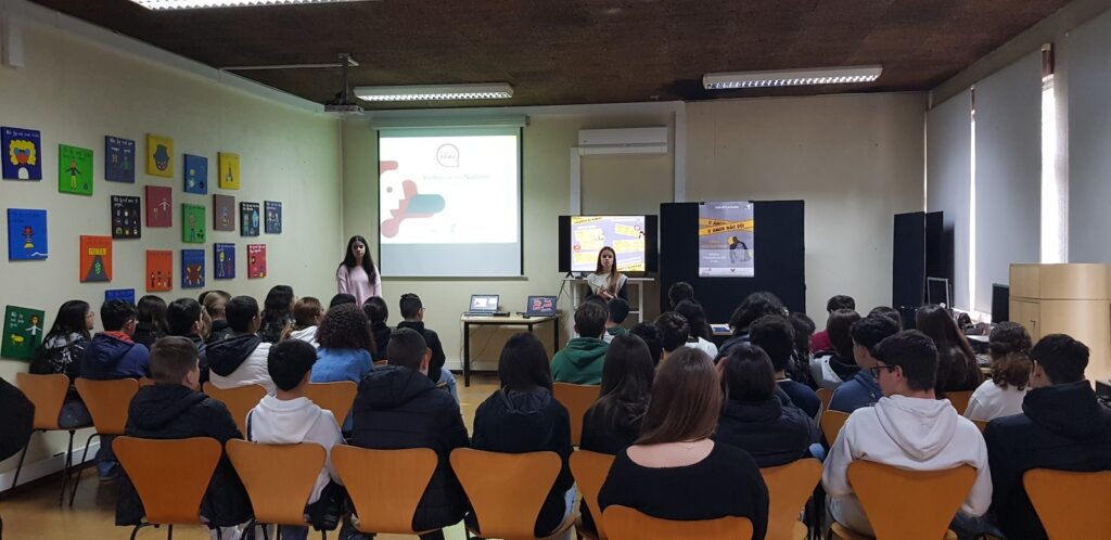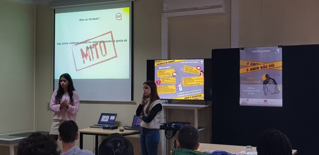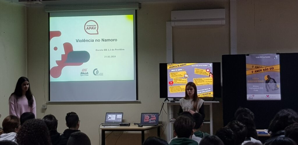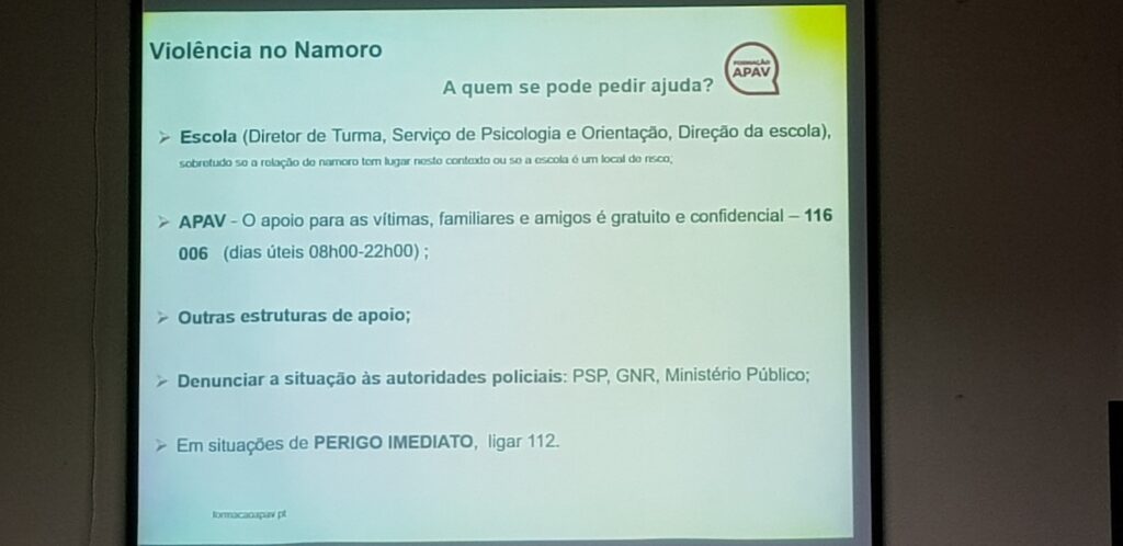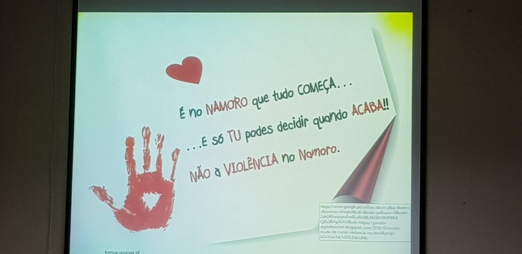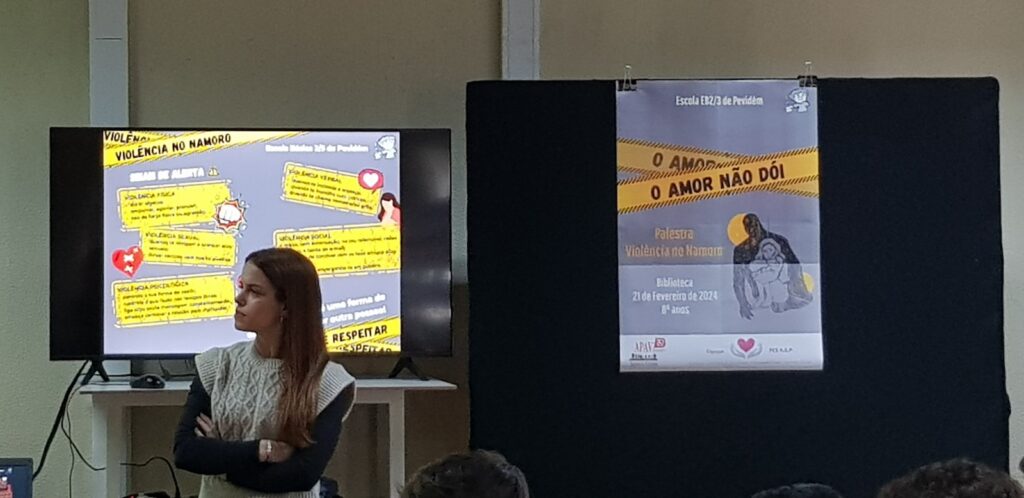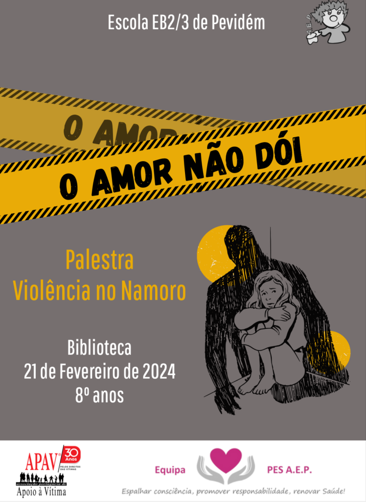 Paralelamente, promoveu uma ação de sensibilização para os alunos das turmas do 8º ano sobre o tema “O Amor não dói”, que se realizou no dia 21 de fevereiro na Biblioteca Escolar, orientada pela Associação Portuguesa de Apoio à Vítima (APAV) e pela Enfermeira da Saúde Escolar.