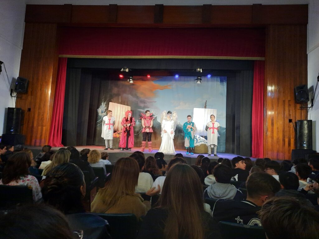 De manhã, os nossos alunos foram em direção ao concelho de S. Mamede de Infesta, distrito do Porto, onde assistiram, com muito entusiasmo, respeito e admiração, à peça de teatro “Auto da Barca do Inferno” de Gil Vicente, encenada pela formidável Companhia de Teatro O Sonho, no Salão Paroquial da freguesia de Perafita. Os nossos alunos adoraram!